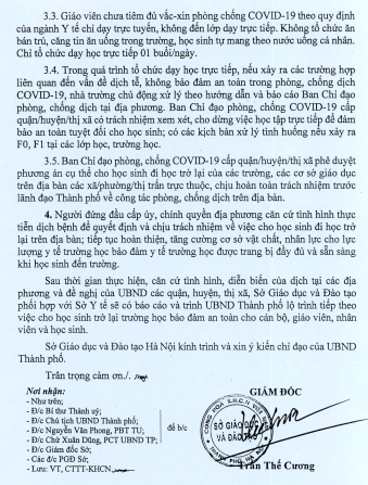 THÔNG BÁO VỀ VIỆC CHO HỌC SINH KHỐI 1,2,3,4,5,6 THUỘC 12 QUẬN QUAY TRỞ LẠI TRƯỜNG HỌC